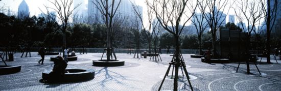同样因长椅而闻名的还有淮海路襄阳路路口的襄阳公园,两排长椅,每一只都整齐地夹在两棵粗壮的法国梧桐间。