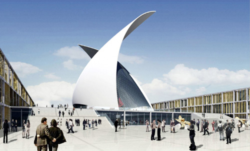 退身到博物馆外,两叶未来主义的白色巨型风帆亲昵地靠拢着,指向蓝天或循入云雾,不妨请它们做誓言的见证,另类,却足够浪漫。