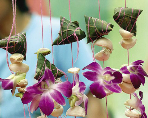 吃粽子用的甜辣酱加花生粉的辅料是独家配制,咸甜适度,麻而不辣,在热腾腾的肉粽上淋上汁,立即散发出诱人的香气,其肉馅肥而不腻,粽米软而不塌,糯而不粘,直缠得人流口水。