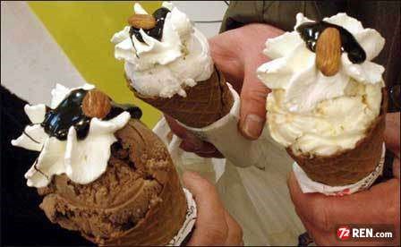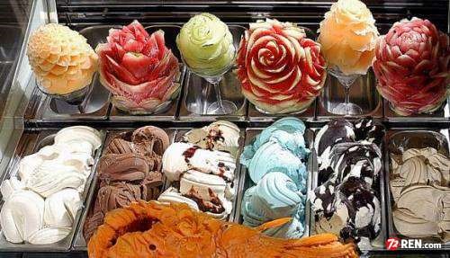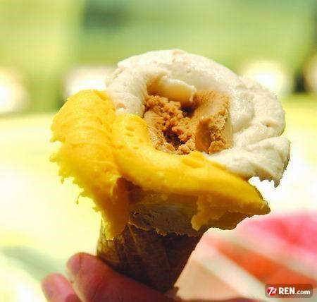 “非常喜欢”的地方。店堂的“调调”像极了“欧洲街头的冰淇淋店”。“意大利手工冰淇淋”,式样有“3种”,甜筒、纸杯、盒子。甜筒是“一块一块添上去的”,弄成“很漂亮的花型”,拿一个在手上便能吸引“路人频频回头”。口感“软糯黏稠”,水果味的超“赞”,“香香甜甜的有初恋的味道”。服务生总是“热情”地邀请你试吃,口味“任你挑”。