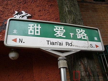 地铁三号线八号线虹口体育场站 光听这个名字,就甜到心里了。位于虹口区山阴路一带。周围都是树荫中的老洋房。每一个有太阳的午后,阳光从树叶缝隙中投在墙上大片大片斑驳的光,你会发现墙上很多的爱情宣言,还有很多牵手的人们。路过甜爱路的话,千万别忘了去路口的‘爱心邮筒’寄一封情书,每封入邮筒的信都会被敲上LOVE的邮戳。我可没忽悠你,那可是09年的新政策。多甜蜜的政策啊!