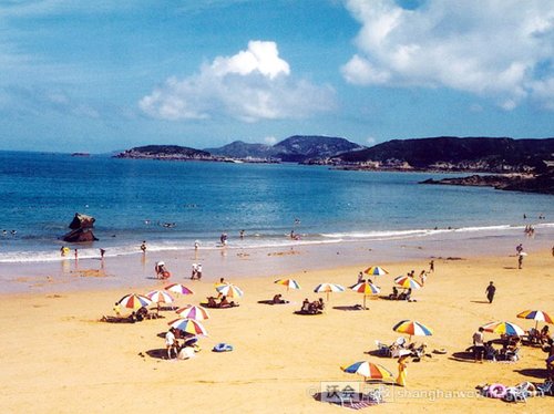 金庸笔下描绘的美妙神奇的东海小岛——桃花岛。靠近宁波海域,是舟山群岛中另一个岛。也是群岛里第二大海滩,有最深的港口。这里与美国大西洋海岸上的沙子相比,桃花岛上的沙质毫不逊色。滩地平缓,沙质纯净,沙粒细软,是进行海浴、沙浴、阳光浴和沙滩漫步的理想沙滩。夏秋季,每当星辰消失,旭日钻出海面,海天、沙地浑然一体,形成“金沙日出”的天象景观!
