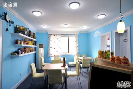2、上周日临时决定去的,点评网上看到就过去了,店里放着蓝调音乐,环境很好啊,有点咖啡吧的气氛,两个包厢都有客人,倒饮料的时候瞅了一眼,有圣诞钟,房间很漂亮呀,下次人多可以订,老板娘教了风声,真是费脑子啊,不过还是很欢乐,后面大家拼桌玩狼人,还有狼人灯,就是有点小了,送了奶茶爆米花,真是不错!