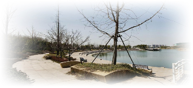 顾村公园一期位于外环线以北,中心河以东,沪太路以西,总用地面积183.9公顷。 “顾村公园”四个大字的公园名字摆在了公园的最外面,一进入就见到一大片草坪,园内还散布着大片的香樟、银杏、广玉兰等树木。部分银杏叶已开始从绿色变成黄色,黄绿交错的叶色,透出了几许秋意。