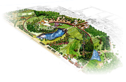 作为上海唯一“中国最佳生态宜居城市”——嘉定新城,40%的绿化覆盖率,远香湖、环城林带、紫气东来、石岗门塘形成“一环、一湖、二轴、多带”的绿化体系,呈现“千米一湖、百米一林、河湖相串、荷香满城”的景观生态系统。紫气东来便是这一新城规划中的一条特别的中央景观带。约72万平方米的紫气东来中央绿脉,横贯嘉定新城中心区域,近300米宽。“舞”公园的景观理念源自中国传统绘画——书法和舞蹈。自然中的行云流水启迪了传统舞蹈和书法艺术的形式,反过来,这些传统艺术形式又在现代景观设计中得到回映。紫气东来中央景观带设计中的几条走廊交织变化如行云流水,又如水袖飞舞,沿空间和地形变化蜿蜒起伏,将公园的各项用途结合成统一整体。