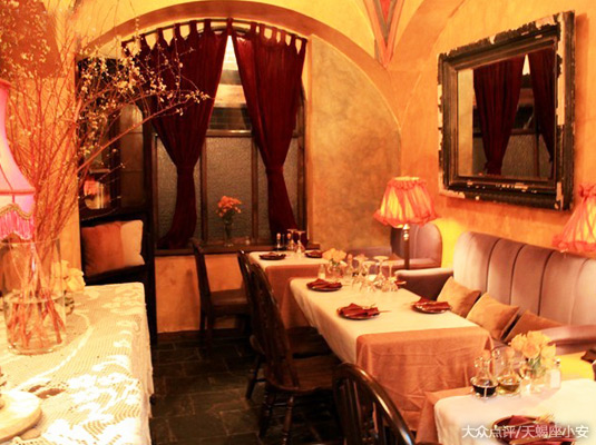 地址:长宁区安化路492号德必易园多媒体创意园区106室(近凯旋路) 价格:人均71元隐秘在闹市区的悠闲浪漫小屋。店主是80后的海归,因此将老上海风情与西洋元素做了巧妙的融合。餐厅的设计独具匠心,木质地板、昏黄吊灯、古式钢琴、泛黄书籍和铜质摇铃,让人不由自主的放慢节奏,愿意静静享受与爱人抑或友人冬日的惬意午后。