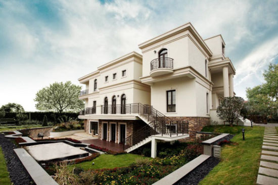 君庭位于浦东区银柳路385弄,作为东郊别墅板块内的顶级别墅楼盘,该项目占地75440平方米,只有21套独栋别墅,0.24的容积率和60%的绿化率,在城市别墅中首屈一指。平均每套别墅占地达5亩,单栋面积在1300-1400平方米之间,其中最大面积的一套别墅包括花园面积达3500平方米。