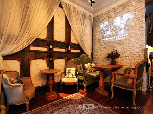 上戏附近巨鹿路上一家以文学和咖啡为主题的欧式咖啡店。任何对书稍有感觉的人,走进去随意一瞥,会发现摆放在里面的书,摆设,雕塑,墙上的画,还有一架安静的钢琴,都有一种高傲,孤独,忧郁的气质。罗马风格的白色理石柱,落地单面透光大窗,书架中间夹着一道田园风光,竹叶婆娑,庭院青翠。您可以在这点上一杯咖啡或花茶静静地品书。