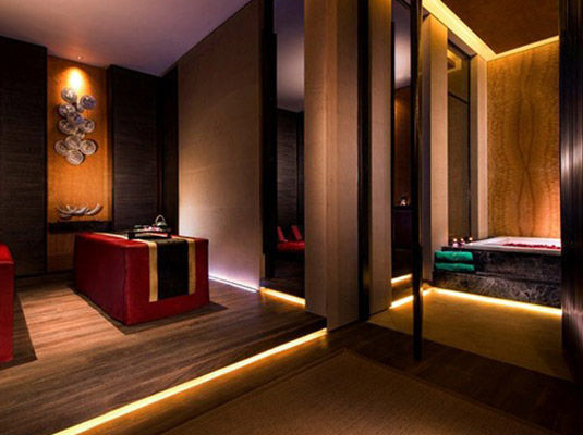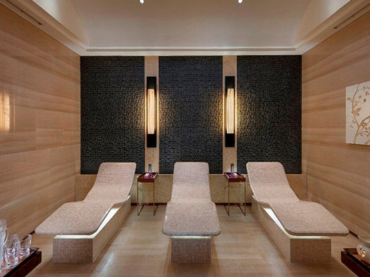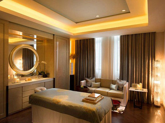 水疗中心位于华尔道夫酒店三楼,金色的主色调以及入口处精致的地毯和悠扬音乐就已经把奢华大气的氛围渲染到极致。华尔道夫水疗共设8间理疗房,每一个房间都确保私密与幽静,均配备独立的蒸汽间和雨淋花洒。而豪华VIP贵宾水疗套房面积近100平方米,并且配备双人蒸汽房,按摩浴缸,壁炉装饰以及宽敞舒适的休闲区域,尽显奢华。