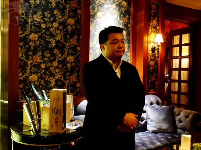 绅酒廊的Jackie是亚太调酒冠军。他是在加拿大长大的香港人,还曾在意大利餐厅里当过厨师呢。中西合璧的生活经历让他的调酒充满了的天马行空的个人魅力。他得到世界调酒大赛第五名的调酒器具是一套功夫茶具。你可以在salon喝到法国最顶级的国宴香槟Salon。但鸡尾酒么,全是Jackie牌。别想点一杯Pink Lady或者是Mojito,你可以点一杯今夜我很寂寞或者幸福人生。Jackie是根据你选的酒具和你的心情,调制出属于你自己独一无二的鸡尾酒来。