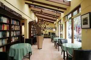 喝茶的地方是专门辟出来的,与选书的的地方分开。店内墙上的玻璃窗是彩色拼贴的,不透明,非常欧华,完全符合这个城市的意境。店里还定期不定期地举行诗歌或小说的作品朗读会。