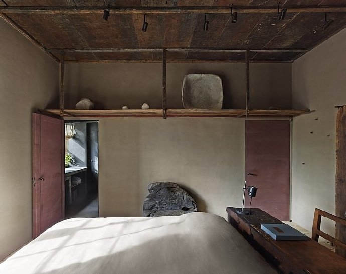 整个空间大量使用当地材料,如石材和再生木材,装饰均为古董,极为精妙克制,创造了一个冥想的天堂,不同物品和文化间产生的冲突和张力唤起无限灵感和想象空间。