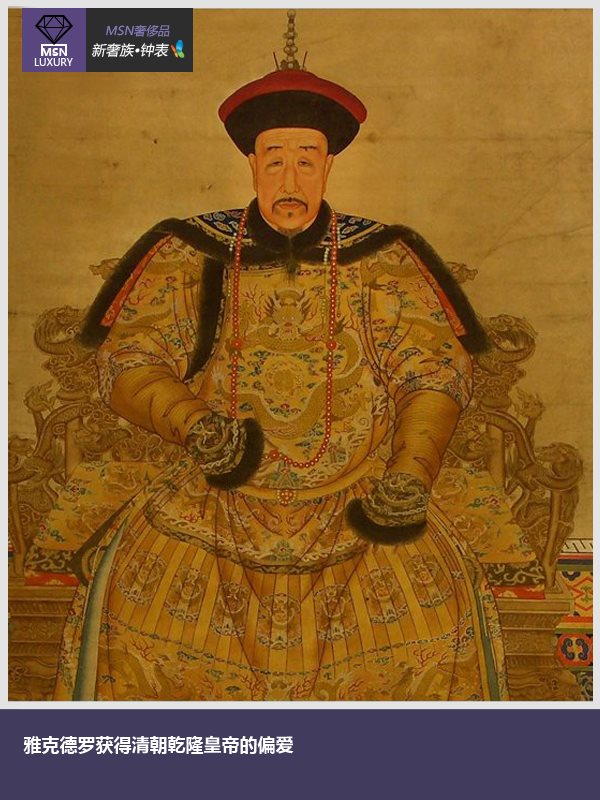 早在18世纪,雅克·德罗已创作出复杂机械装置,为人赞叹不已,其中最著名的三个自动玩偶:作家、画家与音乐家,相继在日内瓦和巴黎进行展示,得到了法国路易十六和王后玛丽·安托瓦内特的赞许。当时不仅在欧洲、俄罗斯受到皇室青睐,雅克德罗更在遥远的中国获得了清朝乾隆皇帝的偏爱。18世纪雅克德罗特别为中国特别制作的“中国市场表”更让乾隆帝爱不释手,并赐予了该品牌 “雅克德罗”的中文称号。