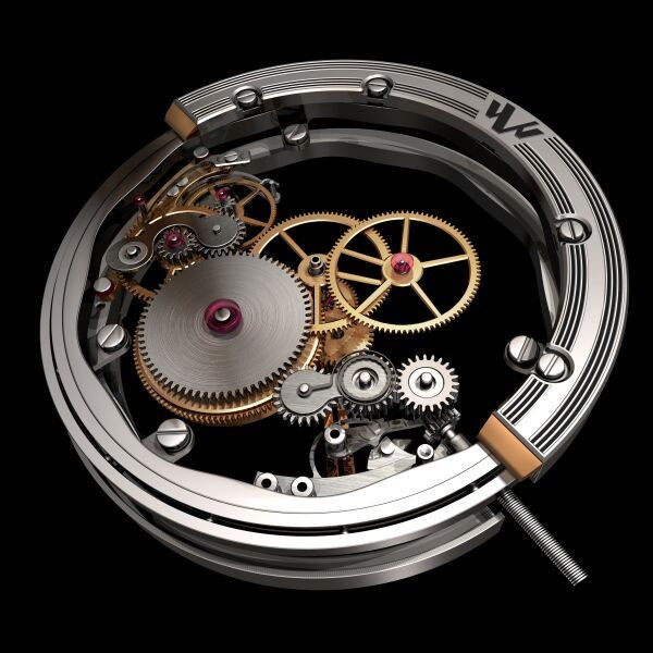 DeWitt表厂自行研制DW 8014自动上链机芯,由外缘环形摆陀驱动,拥有专利ASW自动调节上链效率技术,跳秒针与陀飞轮框架直接相连,表盘有动力储备显示,摆频每小时18,000 次(2.5 Hz),Glucydur可调节惯性摆轮,菲利普斯曲线Straumann Hairspring游丝。