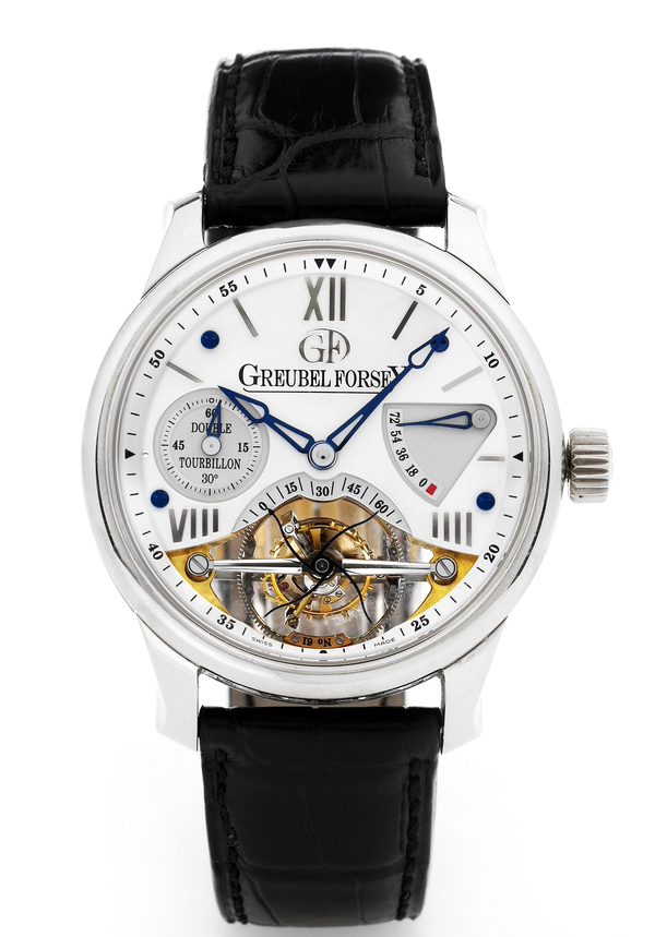 从豪华典雅的手表Greubel福西 -双陀飞轮30 °视野。 在2006年设计的,这在白色黄金一罕见双陀飞轮计时估计为20万元 - 30万元。