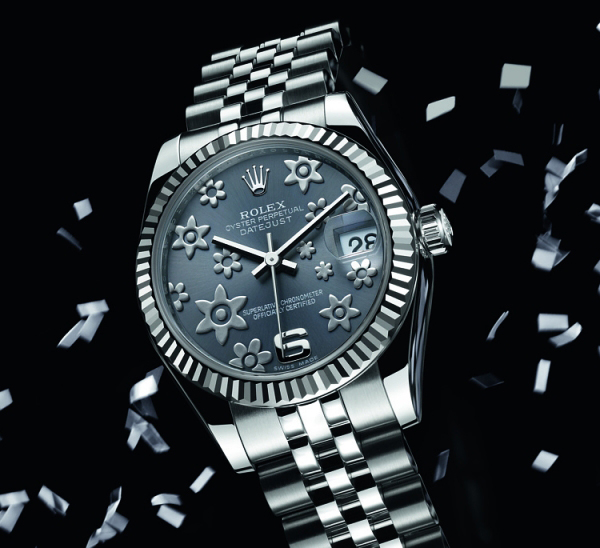 这个系列从美丽的劳力士所谓“蚝日期仅仅夫人”,提出了在2010年巴塞尔钟表展。 1665985灰不同颜色的表盘,以巧克力或半球形凹槽挡板与24或46个镶有闪烁钻石。 在6点是擅长于罗马数字小时标记。 新鲜,精致,非常典雅,这些新的劳力士女式豪华车型雄辩地证明了女性的优雅风格,所有女装腕表追求。
