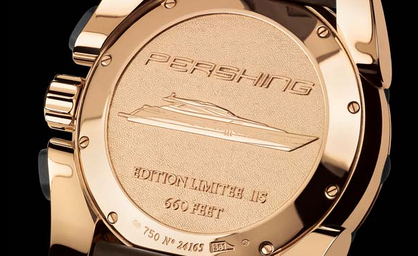 帕玛强尼弗勒里耶合作与boatbuilders 1今天最大的潘兴创造奢侈腕表。 集合的第一线,在建立新的合作的荣誉,是annonced,题目是“1 - 1 - 5”。 这是一个限量版专用的著名船潘兴,这是115英尺长。 此行包括两个系列:从18克拉黄金第一和金或银拨号和自动上弦口径公积金190钯950。 第二个系列的代表是潘兴计时手表。 手表表盘有4种 - 颜色的苋菜,石墨,银和蓝色的金属。 手表是由钢和肯定是用自己的银潘兴游艇设计让人联想到成为意大利公司的标志。