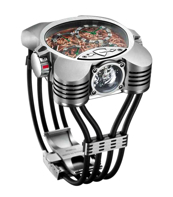 从另一个豪华手表大帕米吉安弗勒里耶 -帕玛强尼弗勒里耶的陀飞轮手表布加迪。 该手表的灵感来自于真正的盛大之行的第一汽车在20世纪20年代和30年代的车辆一代。 这个表壳是由18K金及其相关概念允许纳入布加迪汽车的控制面板安装。 随着20万美元的价格。