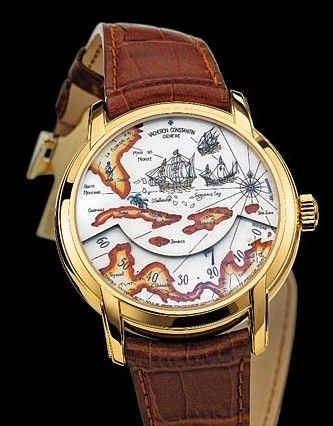 表盘:上下双层22k金表盘,“高温明火”珐琅绘有探险家哥伦布的航路