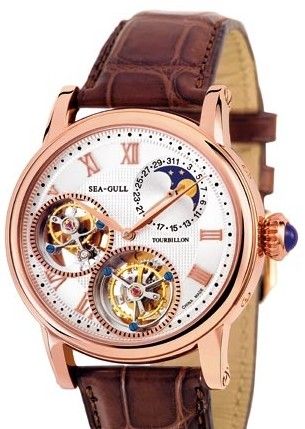 11 海鸥表日历月相双陀飞轮玫瑰金表