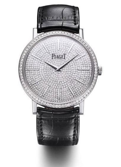 伯爵Altiplano系列腕表的瞩目之处,在于其密镶钻石表盘,密镶735颗钻石。腕表由伯爵自行制作和镶嵌,搭配环形宝石图案,必需由顶级宝石镶嵌师耐心细意打造。海豚式指针在12枚金质时标上运转,不仅易于读取,更保留典雅的伯爵美学。