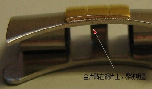 实心间金比较容易鉴别,因为多数假表的间金部位是在表带装好后再刷的漆,这就很容易有地方刷不到,而又有地方刷过界了。实心全金,初学者就需要看带扣印记了。