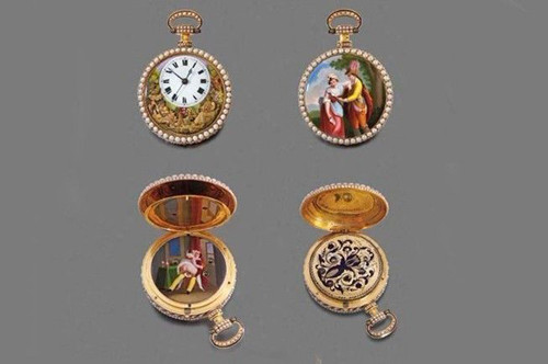 17世纪末,为满足贵族对奢华钟表艺术的追求,欧洲制表工匠运用复杂工艺将春宫图绘制到钟表上,于是隐藏着情爱活动画面的春宫表便华丽诞生。