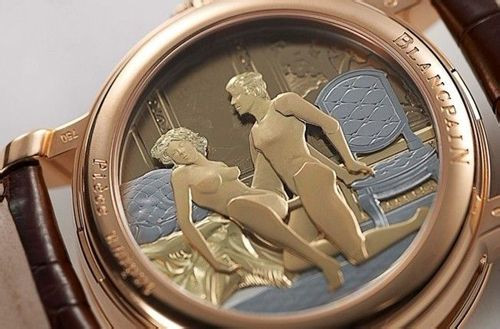 该款2000年左右推出的定制限量版春宫表以白金打造表壳,底盖场景以中国工笔画风描绘,线条柔美,色彩华丽,人物褪去衣衫后更是让人浮想联翩。