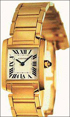 卡地亚家族在19世纪中叶已是闻名遐尔的法国珠宝金银首饰制造名家。路易·卡地亚是当时颇受皇室权贵赏识的金饰工艺家。1888年,卡地亚尝试在镶嵌钻石的黄金手镯上装上机械女装表。1904年为老朋山度士(SANTOS)而制造的金表一炮打响。从此卡地亚手表一直是上流社会的宠物,历久不衰。