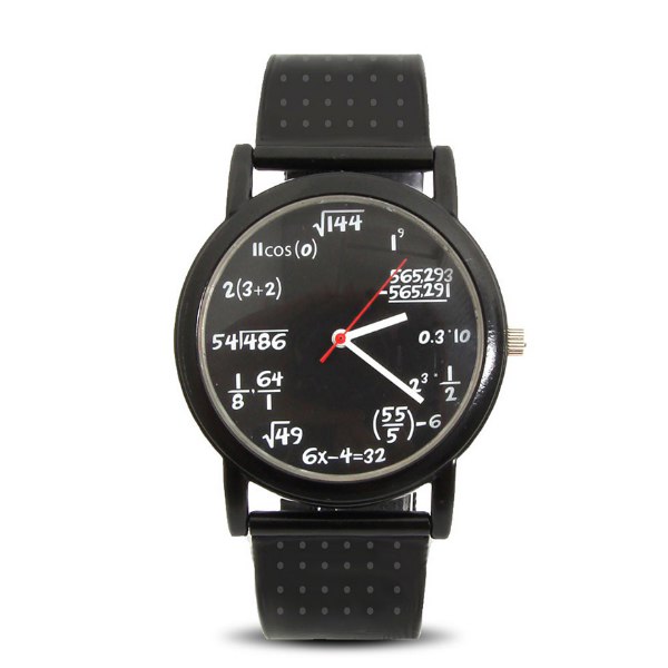 表盘中12个时间刻度分别以12种不同的数学公式代表,1点刻度以1的9次方表示,2点刻度用565,293与565,91的减法表示,其它刻度包括加减乘除、开方、一级方程式等等数学常用公式与算法,如果联偶是数学爱好者应该会很喜欢。