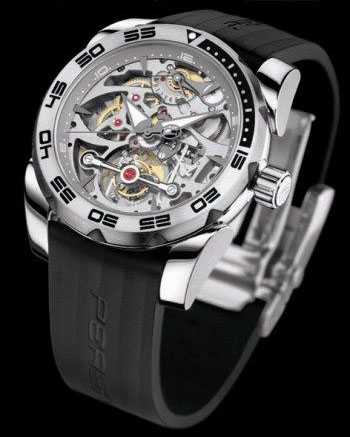 帕玛强尼与意大利著名游艇品牌跨界合作的腕表更偏向于绅士运动的范畴,这枚镂空的陀飞轮腕表具备如下特点:30秒钟陀飞轮、7天动力储存、钯金属表壳、防水200米、单向旋转表圈、夜光三角造型指针、天然橡胶表带……作为休闲表,身价绝对够金贵,至于怎么戴,还要你说。