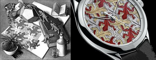 江诗丹顿(Vacheron Constantin)曾在2012年日内瓦国际高级钟表沙龙上首次推出了Métiers d'Art Les Univers Infinis系列。作为该系列的第二套腕表,Les Univers Infinis系列腕表从世界最著名艺术家莫里茨·科内利斯·埃舍尔(荷兰版画家,因其绘画中的数学性而闻名)的画作中汲取灵感,旨在向平面密镶镶嵌的图形艺术致以热烈的礼赞。