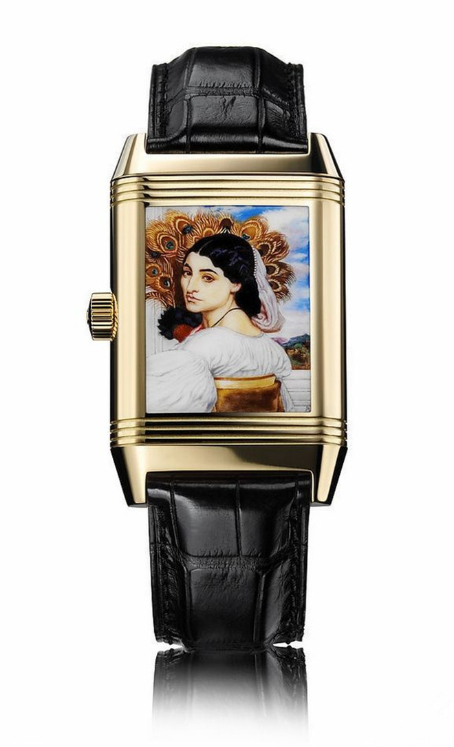 英国一位拥有著名画作《Pavonia》的收藏家渴望将其积家Reverso腕表个性化,又因此幅画作是其藏品中最为珍贵的作品之一,所以委托积家在最钟爱的翻转表壳上刻画这件著名的画像。珐琅大师历经120小时完成,拥有者最终将这只表与著名画作一同公开展出一周。