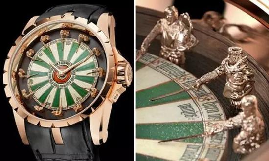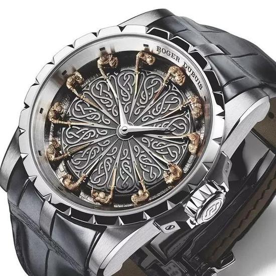 一直以来,罗杰杜彼RogerDubuis设计的手表就如同手表界的Lady Gaga,以多变造型闻名。日内瓦国际钟表展上,罗杰杜彼展出的一款以亚瑟王和他的圆桌骑士为灵感的Excalibur Table Ronde限量版手表大获赞赏。这种设计让中世纪神话与现代制表技术相结合,碰撞出一种令人意想不到的新时尚,使得Excalibur系列迅速成为当代手表的经典。这款圆桌骑士腕表(158,700英镑),全球仅有28枚。