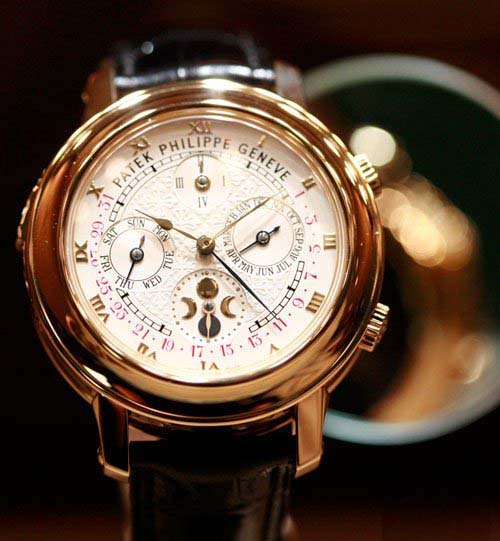 百达翡丽,瑞士著名钟表品牌,其每块表的平均零售价达13000美元至20000美元。百达翡丽在钟表技术上一直处于领先地位,拥有多项专利,其手表均在原厂采用手工精致,坚持品质、美丽、可靠的优秀传统,百达翡丽以其强烈的精品意识、精湛的工艺、源源不断的创新缔造了举世推崇的钟表品牌。