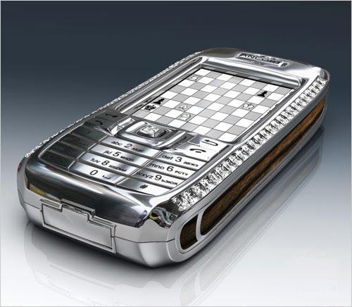 出自奥地利著名设计大师Peter Aloissson之手,手机外壳全部由白金打造,富丽堂皇的机身嵌满了"宝石玉器".其中50颗南非钻石和10颗蓝钻都价值不菲.