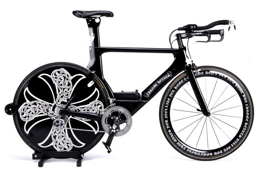 世界级奢华银饰品牌Chrome Hearts本次与环法自行车制造厂之一的Cervélo进行了一次跨界合作推出一款自行车,该作品整体以黑白的设计为主,除了有着满满的Chrome Hearts字型图案设计之外,皮制椅垫上也有Chrome Hearts银饰设计以及十字架图案于其上,相当奢华,售价$60,000美金的金额相信是以收藏为主要目的。
