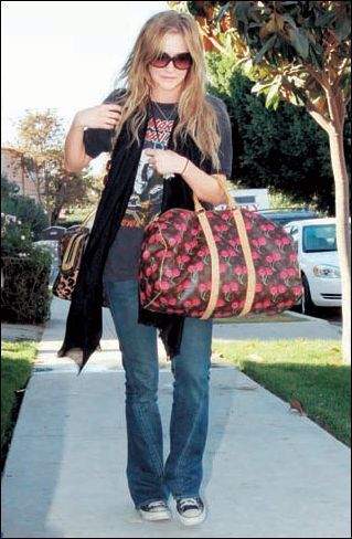 红爆一时LV的樱桃包,如此震撼地出现在我们眼前,造型可爱的樱桃在当时可引起了不少的骚动,即使Ashlee Simpson朴素的服装,搭配如此亮眼的包包,把整体的视觉效果提升了一个层次。