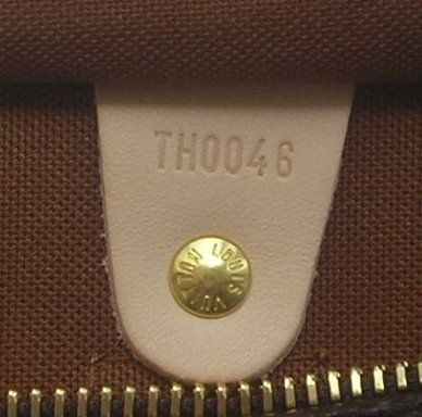 LV的手袋会在一些不起眼的位置印上表示生产工厂与年分的制造号码,一般由两个英文字和四位数字组成。每个LV手袋都会有。而且出产年份不同。包包款不同,序列号也不尽相同。而仿品序列号会有,但往往一个仿造厂出产的就用同一序列号。必须注意的是,有些真品包在1987年以前出产的手袋没有这类号码。LV包包依系列不同,序号烙印的位置也不同。例如:背帶根部内侧(如烧卖包),金属扣环皮质根部内侧(大双子星),袋子里侧面扣環上的配皮上(小双肩),内袋侧缝的小配皮上(小双子星),内袋有个上面缝着LV全写的一块皮子的小袋子,再打开内里,烙印在内里侧缝处(丹宁),袋底翻开靠车缝位置的配皮上(speedy)等等。总之细找,总能找得到。