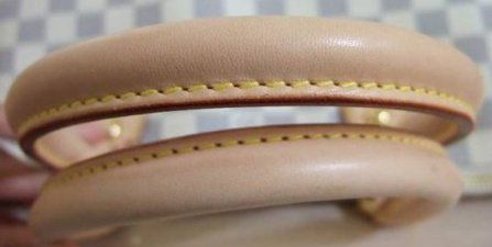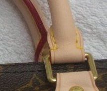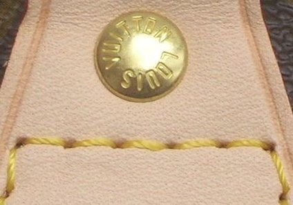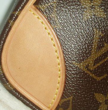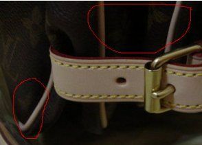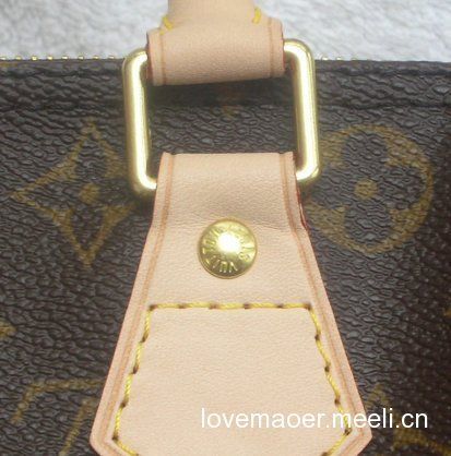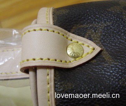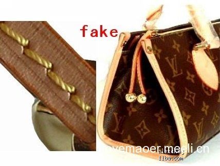 LV的车缝线不但工整对称,且是上过油蜡的麻棉线,可作为辨识的细节。凡是LV产品,粗而韧的缝线会在相等间隔的缝口,据说每英寸严格规定多少个针脚。且内格手工车线也一样一丝不苟,翻开LV手挽袋内层手挽扣处,固定位的贴皮位置亦端正。现在的仿货即使外表可以做到,但内里的线位很难做得这么一丝不苟。以前说从针角可以分辩,假包通常一条线下来是笔直的,真包上的是每个针角有个角度,象连着的柳叶状,有个角度。但现在做得超A以上仿的也可以做到这点了。所以这点不足以为凭了,只能作为检验真包仿制精细度的标准了。下面两个用旧的真假包配皮对比来看。从照片其实已经看不太出了。但摸上手感就稍有不同,仿的皮质就比较硬且亮,真的稍软些。此外观察真假新包所用的车线,也有不同,不过这个只限于新品的区别,只作为参考。真品是黄色(可以参考上一楼的图)。而仿的不知为什么总是用的颜色不对,用很怯的鹅黄色,或很艳的正黄。但通常只在新的时候较明显,假的用旧了,从线的颜色就会分辩不太出来了。