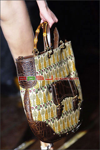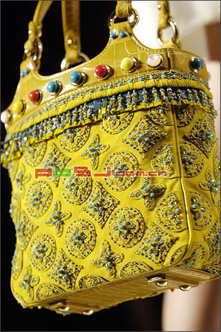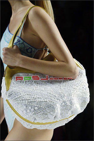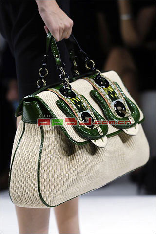 麻编的大提包清凉实用,闪亮的Fendi招牌马蹄扣环及扣带上的精致绣花,让朴实的设计多了华贵的质感。