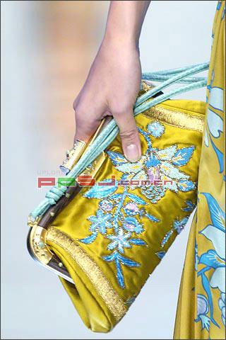 金黄的丝绸上绣着精致的花朵,这款中国风的晚宴手袋,高雅中流露出温暖而轻快的春日情韵