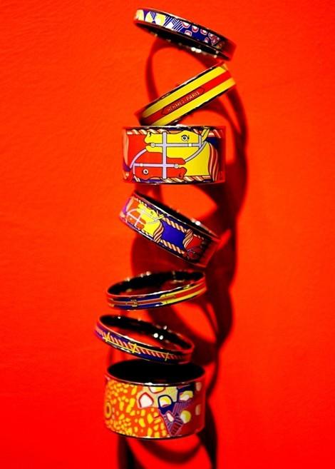 愛馬仕2011春夏琺瑯手鐲被賦予更濃郁的色彩,多樣的佩戴組合呈現出迥異的迷人風格。