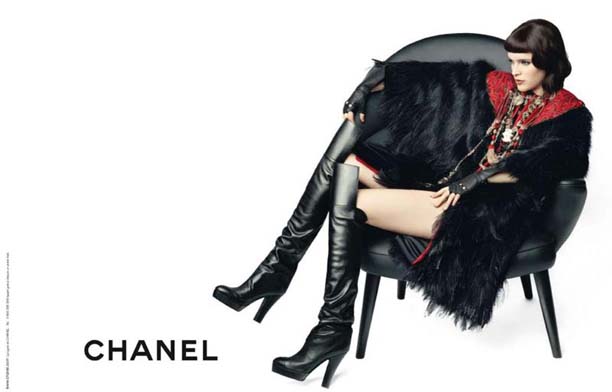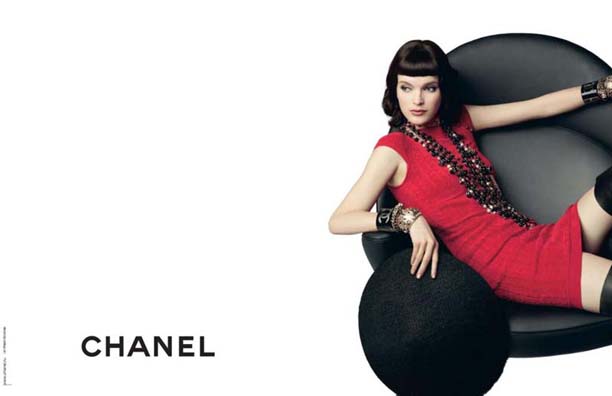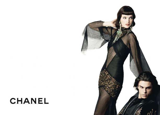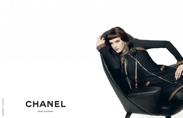 香奈儿时尚大帝Karl Lagerfeld比较吝啬,自己包办了秋季的广告大片拍摄。依旧是他最爱的纯白色背景,简约的一张黑色椅子,演变出男女不同的姿势和关系。