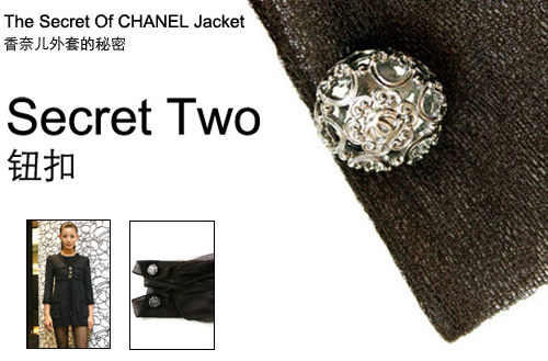 香奈儿的纽扣同时还极具实用性---每个钮扣都有相应的扣眼。香奈儿女士喜欢带手镯装饰品,这样的设计使外套更方便穿脱,是极为实用的设计。