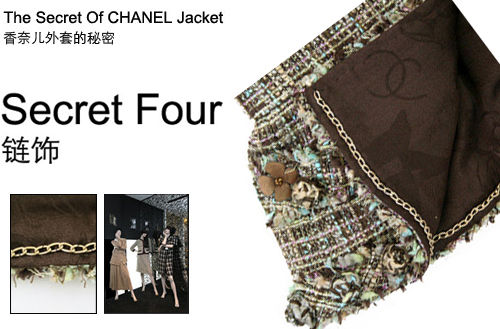 最让人津津乐道的,要算这项 香奈儿 女士独一无二的创见与技术——把金属细链手工密缝在外套下缘,以确保下摆的平整。这样一来既增加了增加垂坠感与衣服挺度,又不会破坏外套的版型, 加强了这一古老的工艺的实用性。