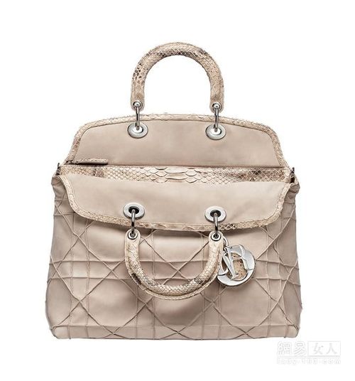 手持 Dior Granville 的时候就能够体会到其时尚、神秘及低调的气质。另外,还可以扣上软皮制成的带子,将两旁的手把翻转,露出羊皮或蟒蛇皮的内层,成为肩上的配饰。手袋供有三个大小可供选择。