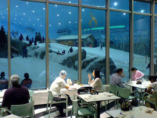 如果想在购物过程中享用美食,阿联酋购物中心可以提供丰富的选择。可以试试apres-一处滑雪旅馆式的场所,适合在那里简单地喝上一杯,或吃点干酪之类的食品。迪拜滑雪村附近有一家sezzam餐厅,拥有种类繁多的全球各色美食。butcher’sshop是一家从南非引入的优秀餐厅--店内提供的新鲜干肉片和口感绝佳的牛排绝对不容错过。