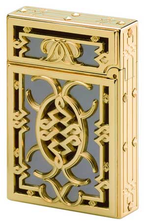 S.T. Dupont纽约第五街限量版打火机体现了巴洛克艺术风格,以黄金格子作为特色。阿拉伯蔓藤花纹灵感萃取于Raymond Subes精美铁制品和洛克菲勒中心楼顶顶着地球的阿特拉斯神像。打火机编号为1至1929,全球限量1929件,售价为人民币23100元。