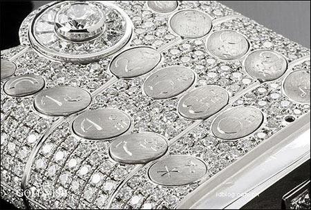 手机外壳全部由纯白金打造;手机上镶嵌了120克拉的VVS-1级别的天然钻石;想要就得预定。这部手机原始价值1,000,000美元,还未包含消费税、奢侈税……